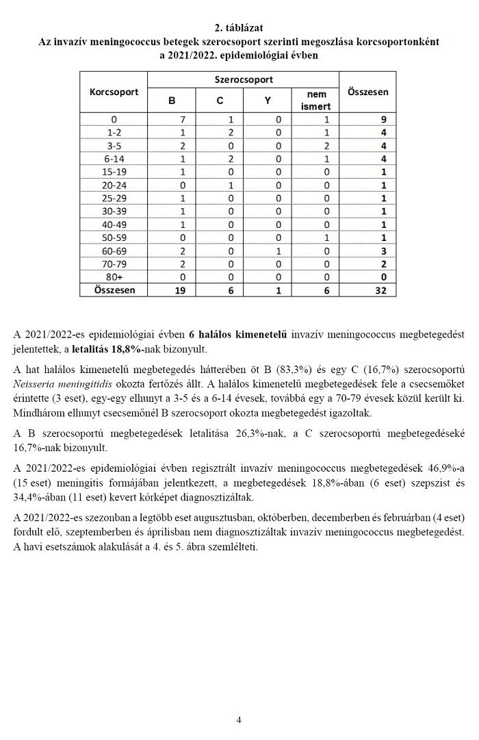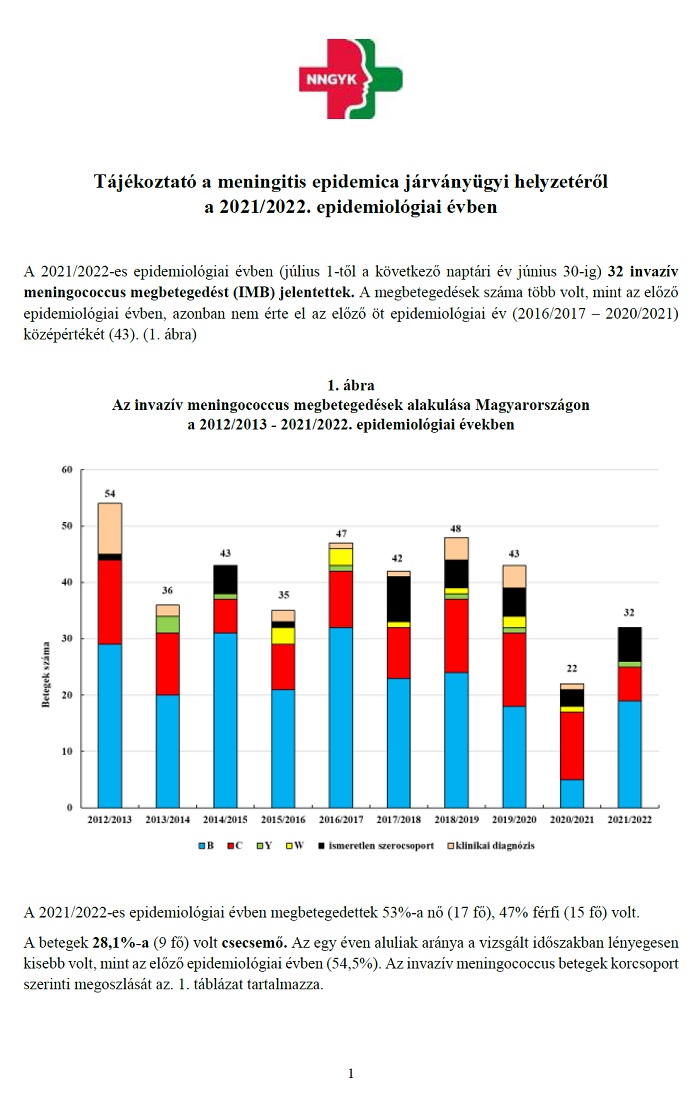 Tájékoztató a meningitis epidemica járványügyi helyzetéről a 2021/2022. epidemiológiai évben
